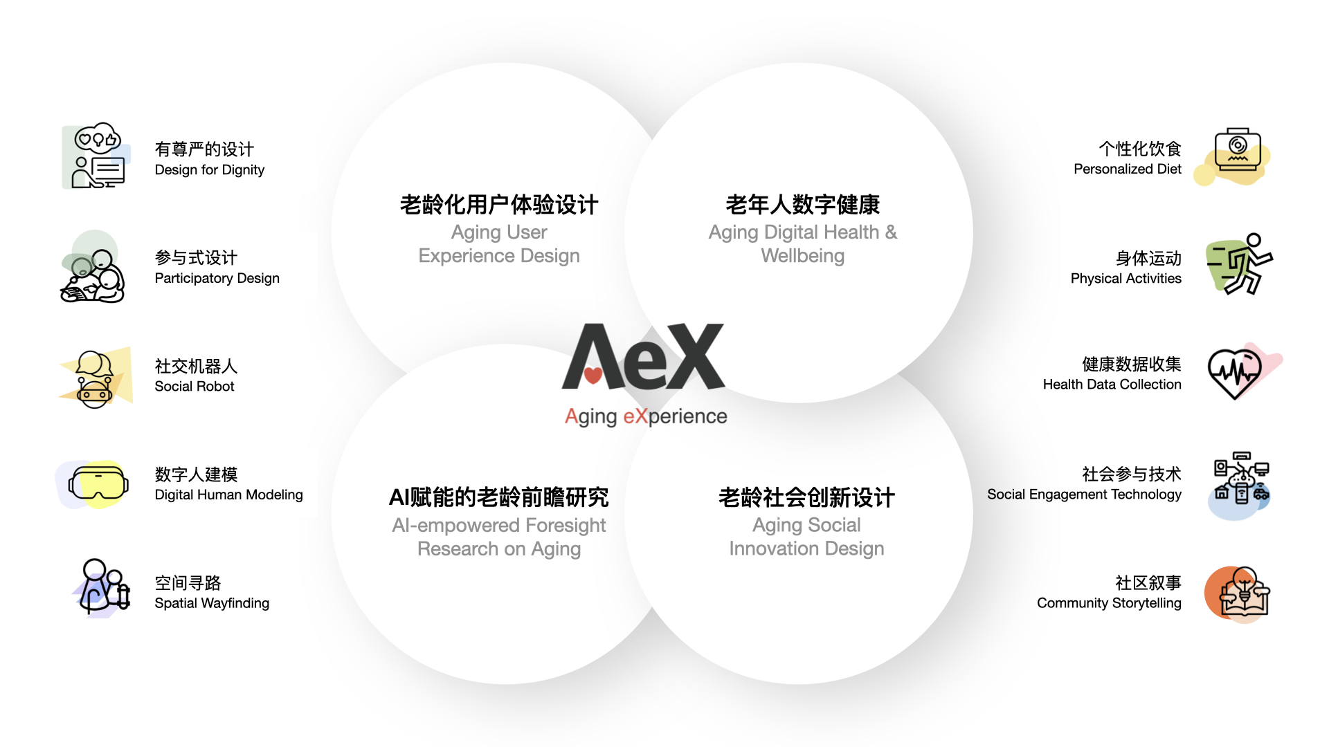 针对老年人在用户体验方向开展研究。研究方向包括但不限于老龄化智能产品体验设计、未来智能老龄化人居环境、老年人用户体验和系统设计等;在人口老龄化的今天,用科技和设计为老年人创造更舒适、健康的生活环境,享受科技带来的便利。未来我们希望可以在衣食住行和娱乐等多个方面,帮助老年人更好的适应数字化生活。